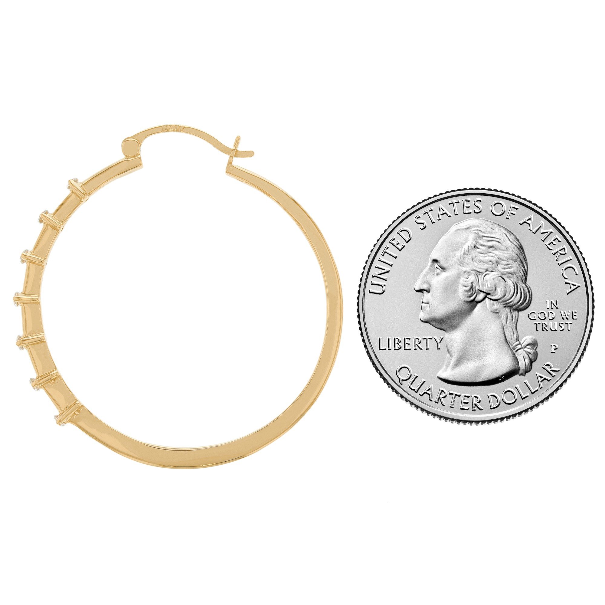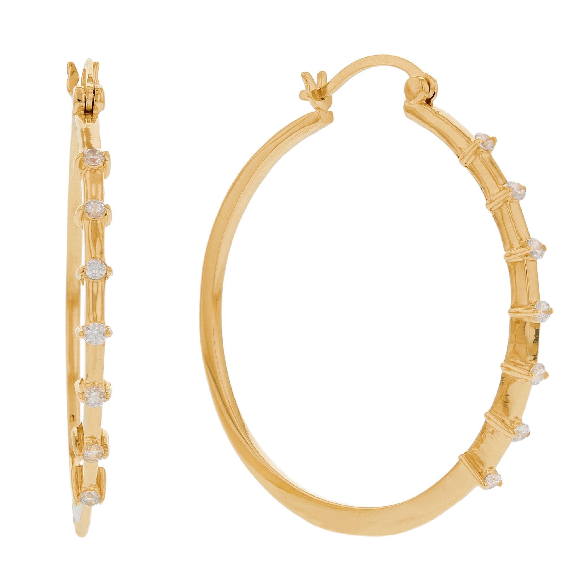 14k Yellow Gold Bar Design Hoop White CZ Womens Earring (SKU# E12618)