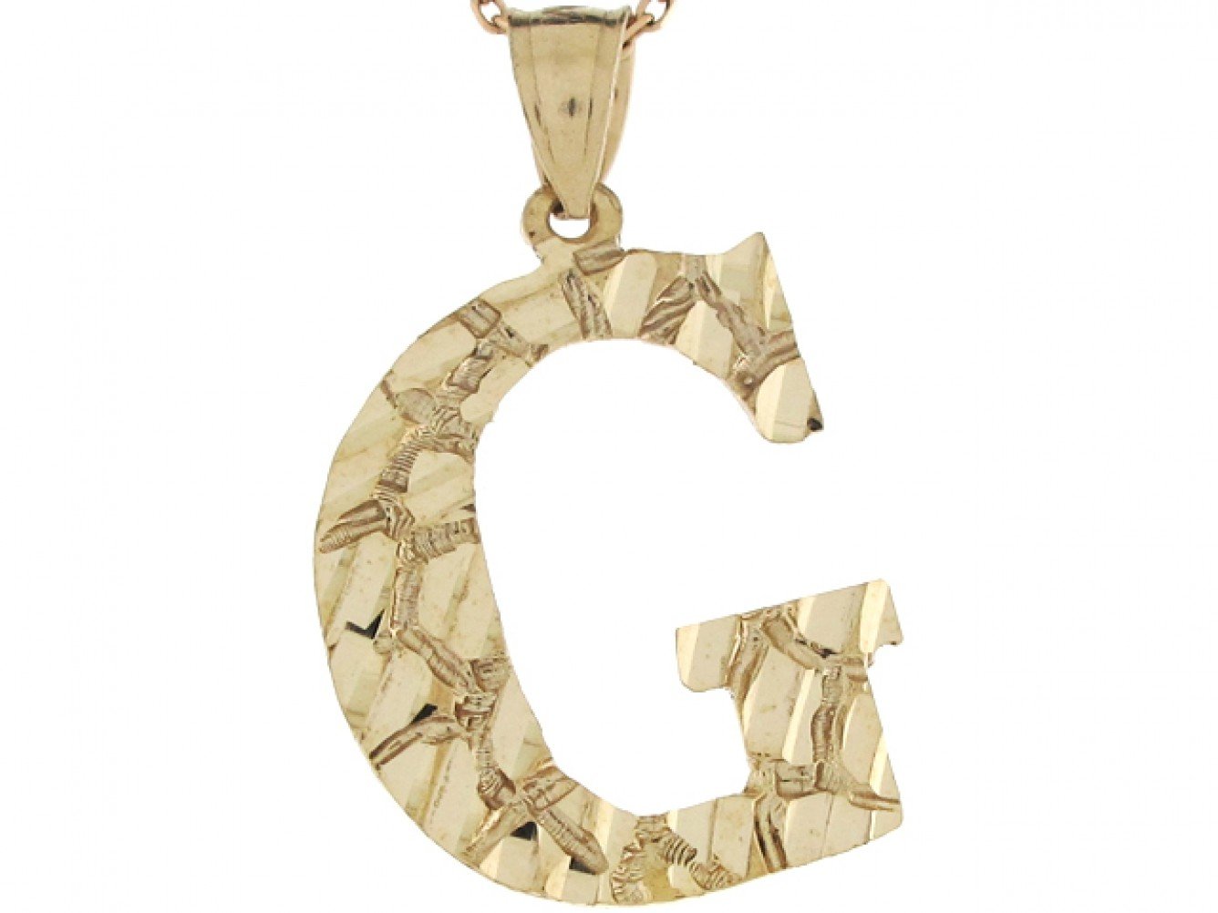 real yellow gold letter G diamond cut nugget design charm Pendant (JL# P4600)