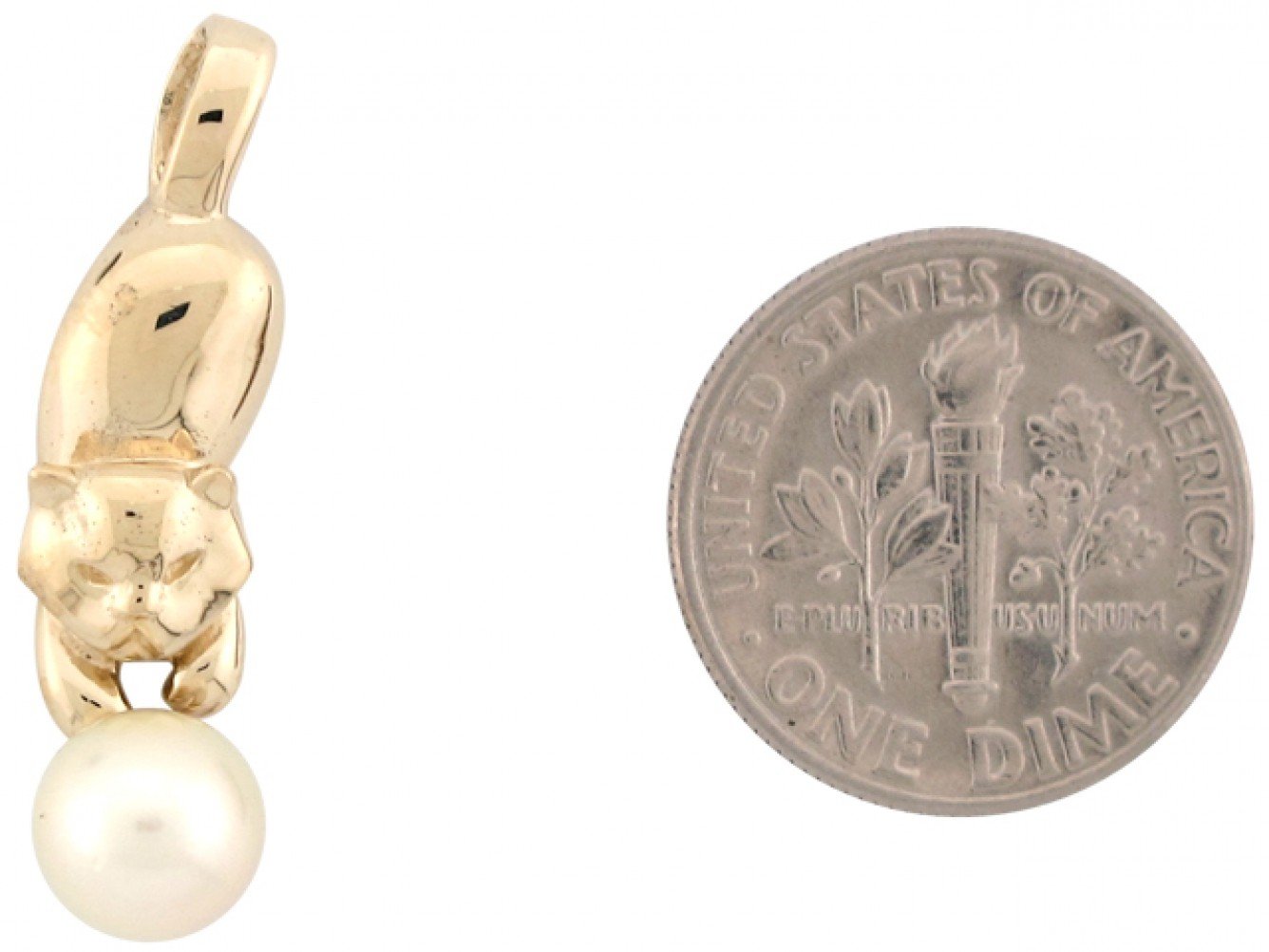 10k Real Gold Cultured Pearl Playing Cat Animal Lovers 2.8cm Slide Pendant}