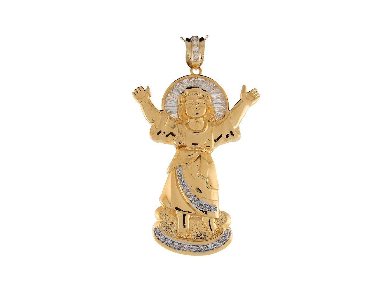 Stunning White Baguette CZ gems create a halo around the face of the Niño Divino, or Divine Child, in this exquisite 10k or 14k Two-Tone Gold pendant. Brilliant round White CZ accent the lower half of the pendant and add to the already stunning aurora of the piece. This large pendant is a fantastic addition to any collection. Our pendants are proudly handcrafted in our California factory. Please note that this pendant does not include a chain. Domestic Shipping Items generally ship out within 1-2 business days. With free shipping your item will ship out via USPS First Class. Transit time ranges from 2-5 business days. We do have express shipping methods available, but item will still takes 1-2 business days to ship out. Items above $200 will require signature upon delivery. Once your item ships, you will receive an order confirmation with tracking information by email We want you to love everything you buy from Jewelry Liquidation! If you are not completely satisfied with your order, and want to return it, please contact us before shipping it back for a Return Authorization Number (RMA#). We will work closely with you to make sure you end up 100% satisfied. If you don't want to replace your item, you will be eligible for a FULL REFUND WITHIN 30 DAYS OF RECEIPT! |