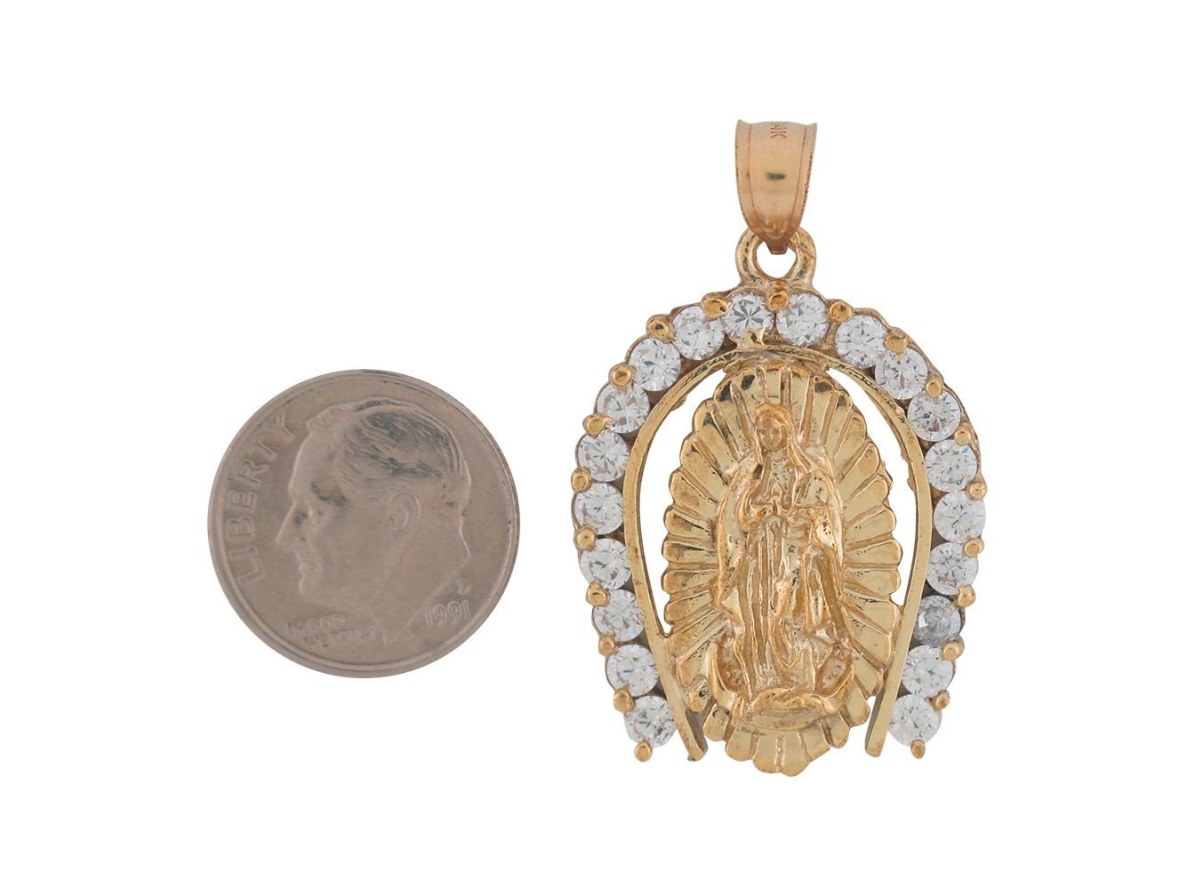 A brilliant White CZ studded horseshoe surrounds the image of The Virgin Mary. Fine 10k or 14k Yellow Gold is used to craft this stunning pendant. The gold is given a high polish finish to stand out in any crowd as it shimmers in the light. Show pride in your religion with this gorgeous pendant and add to you collection today. Our pendants are proudly handcrafted in our California factory. Please note that this pendant does not include a chain. Domestic Shipping Items generally ship out within 1-2 business days. With free shipping your item will ship out via USPS First Class. Transit time ranges from 2-5 business days. We do have express shipping methods available, but item will still takes 1-2 business days to ship out. Items above $200 will require signature upon delivery. Once your item ships, you will receive an order confirmation with tracking information by email We want you to love everything you buy from Jewelry Liquidation! If you are not completely satisfied with your order, and want to return it, please contact us before shipping it back for a Return Authorization Number (RMA#). We will work closely with you to make sure you end up 100% satisfied. If you don't want to replace your item, you will be eligible for a FULL REFUND WITHIN 30 DAYS OF RECEIPT! |