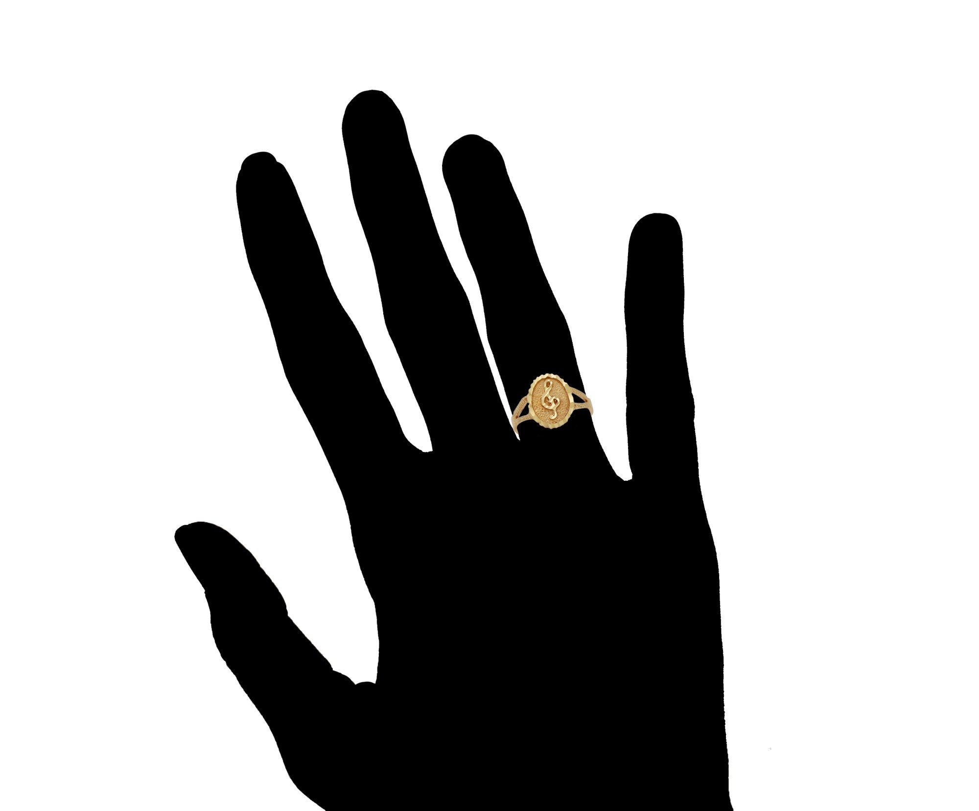 This adorable oval top ring features a G clef (also known as a Treble clef) at the center of the piece. A textured finish on the Gold adds to the vintage look of the piece. Additionally, Diamond cuts are made to the ring to create mirror-like surfaces that make it stand out of the crowd. Make that special music lover in your life smile with the gift of fine jewelry! Only fine 10k or 14k Yellow Gold is used to craft this magnificent ring. Our rings are proudly handcrafted in our California factory. Domestic Shipping Items generally ship out within 1-2 business days. With free shipping your item will ship out via USPS First Class. Transit time ranges from 2-5 business days. We do have express shipping methods available, but item will still takes 1-2 business days to ship out. Items above $200 will require signature upon delivery. Once your item ships, you will receive an order confirmation with tracking information by email We want you to love everything you buy from Jewelry Liquidation! If you are not completely satisfied with your order, and want to return it, please contact us before shipping it back for a Return Authorization Number (RMA#). We will work closely with you to make sure you end up 100% satisfied. If you don't want to replace your item, you will be eligible for a FULL REFUND WITHIN 30 DAYS OF RECEIPT! |