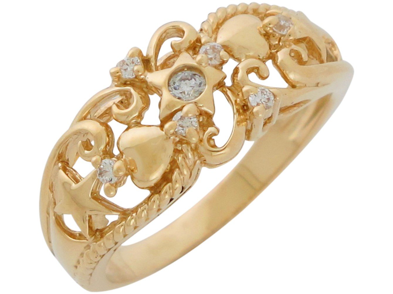 10k Yellow Gold Genuine Diamond Accented Ladies Heart and Star Filigree Ring}