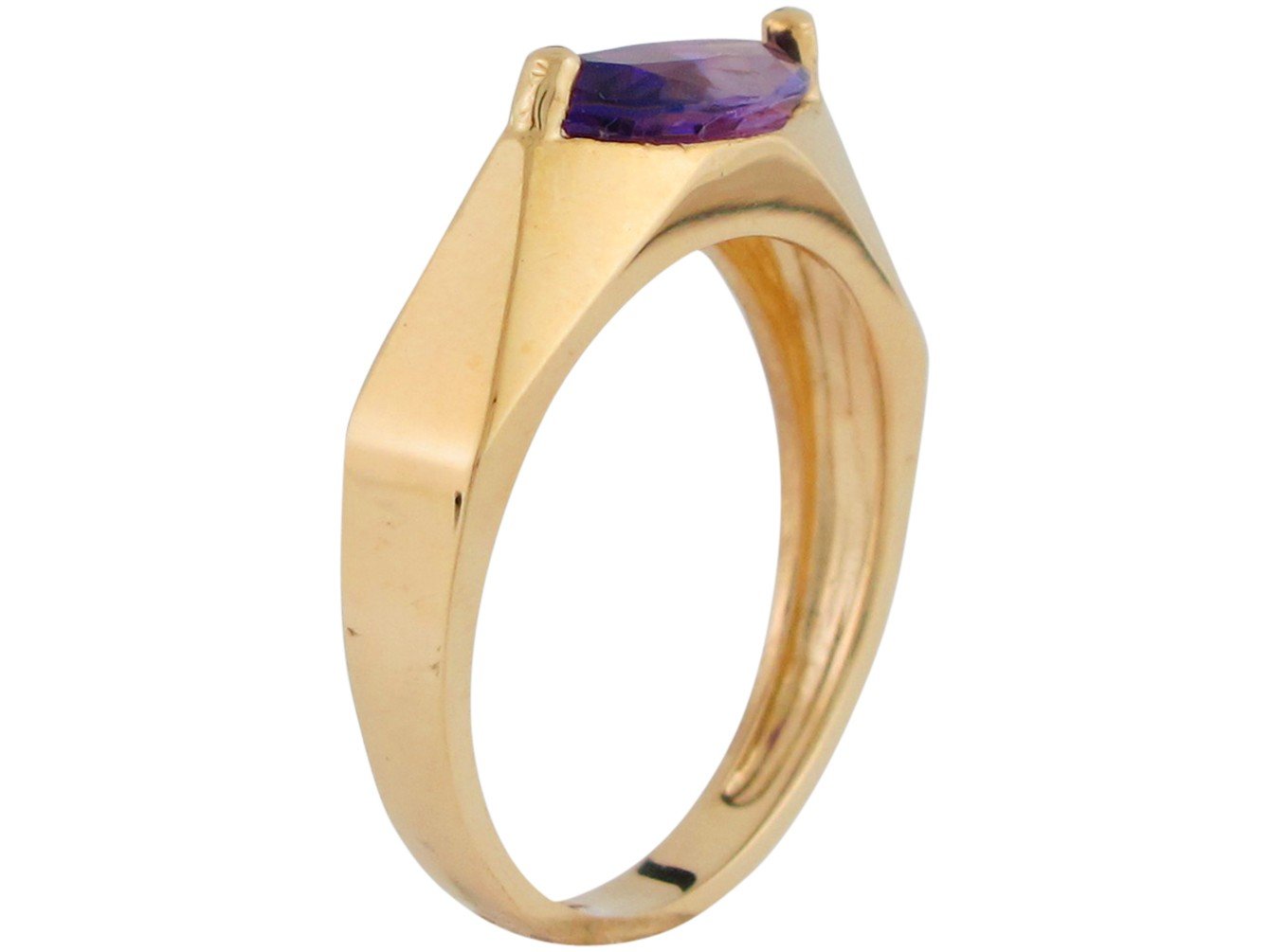 This impressive ring features a magnificent Natural Amethyst gem that is sure to turn heads. The dazzling center stone is set atop a modern design band that features impressive facets. What better way to show off your modern sense of style than with this breathtaking ring. Only 10k or 14k Yellow Gold is used to craft this exquisite ring. Amethyst is the birthstone for the month of February and is known for its energies in Power, Protection and Healing. Our rings are proudly handcrafted in our California factory. Domestic Shipping Items generally ship out within 1-2 business days. With free shipping your item will ship out via USPS First Class. Transit time ranges from 2-5 business days. We do have express shipping methods available, but item will still takes 1-2 business days to ship out. Items above $200 will require signature upon delivery. Once your item ships, you will receive an order confirmation with tracking information by email We want you to love everything you buy from Jewelry Liquidation! If you are not completely satisfied with your order, and want to return it, please contact us before shipping it back for a Return Authorization Number (RMA#). We will work closely with you to make sure you end up 100% satisfied. If you don't want to replace your item, you will be eligible for a FULL REFUND WITHIN 30 DAYS OF RECEIPT! |