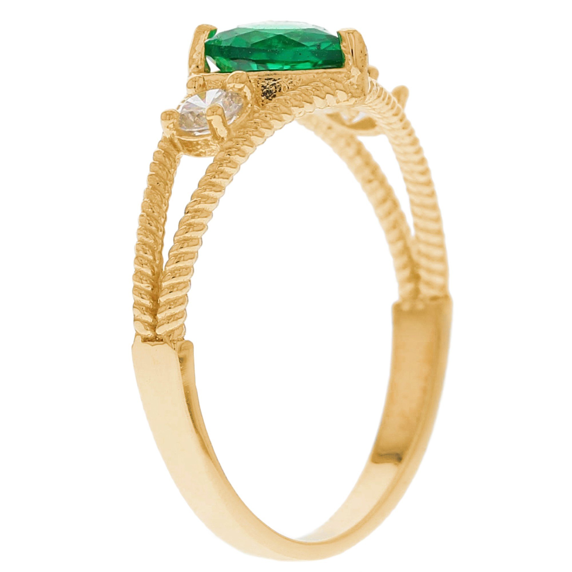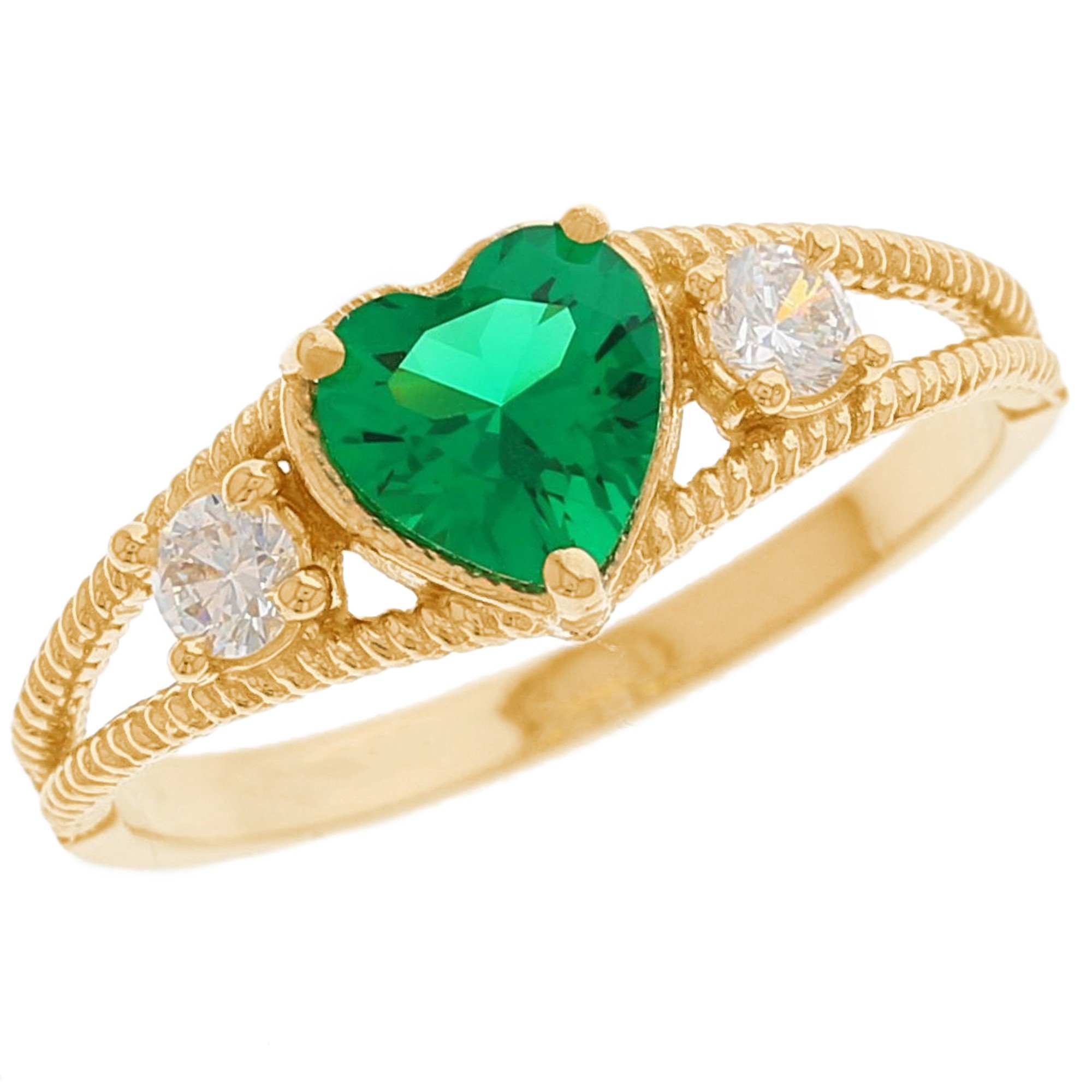 Gold Rope Design Heart Green Simulated Emerald Womens Anniversary Ring