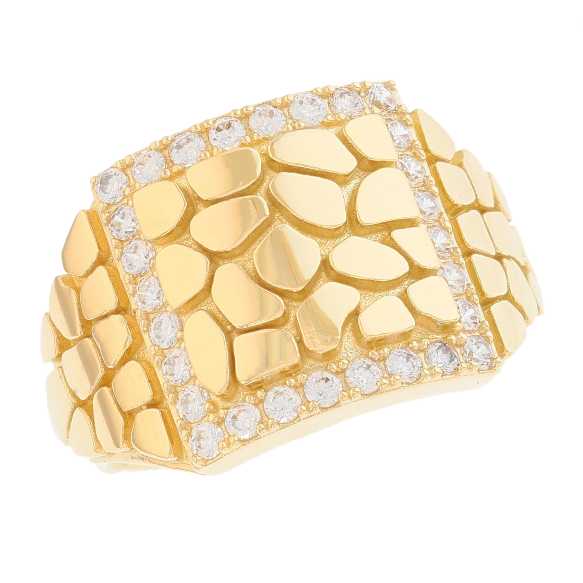14k Yellow Gold Large Square Nugget White CZ Mens Ring (SKU# R13400)