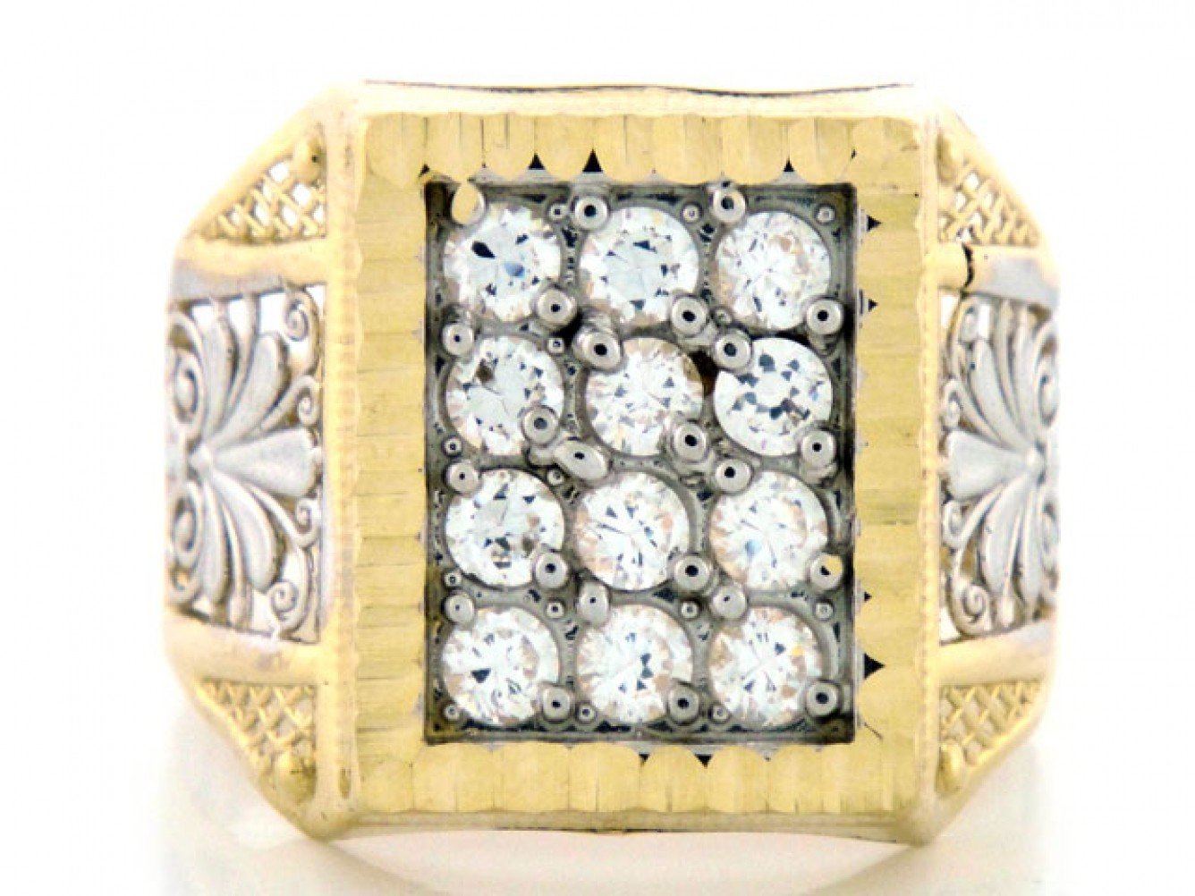 SOLID TWO-TONE GOLD CZ STONE MENS FILIGREE RING (JL# R1895)