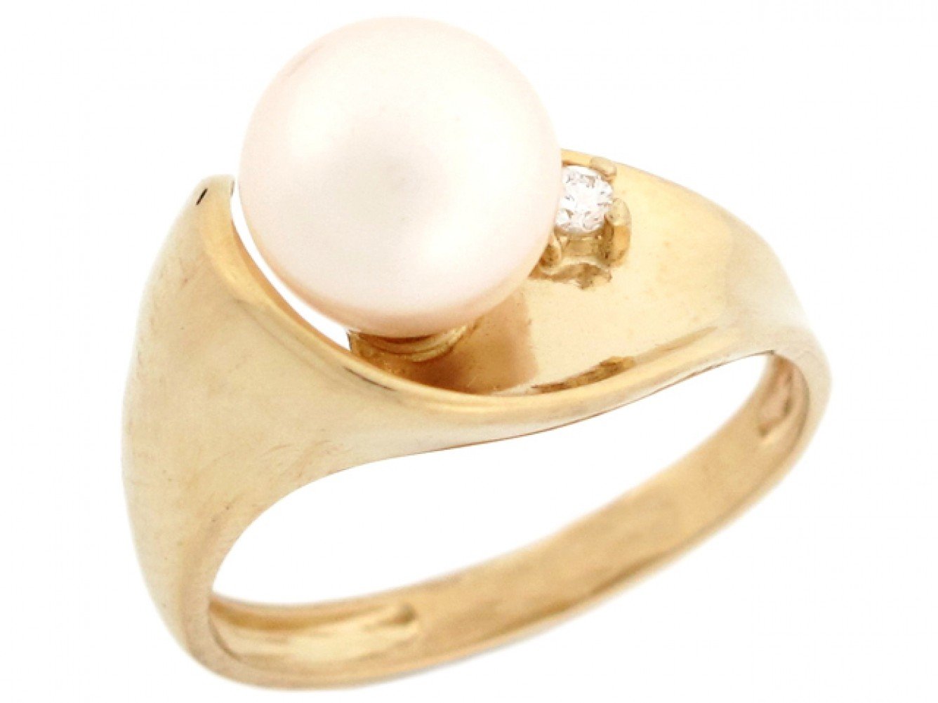 Solid Real Gold CZ & Freshwater Cultured High Polish Unique Fancy Ring Jewelry (JL# R2919)