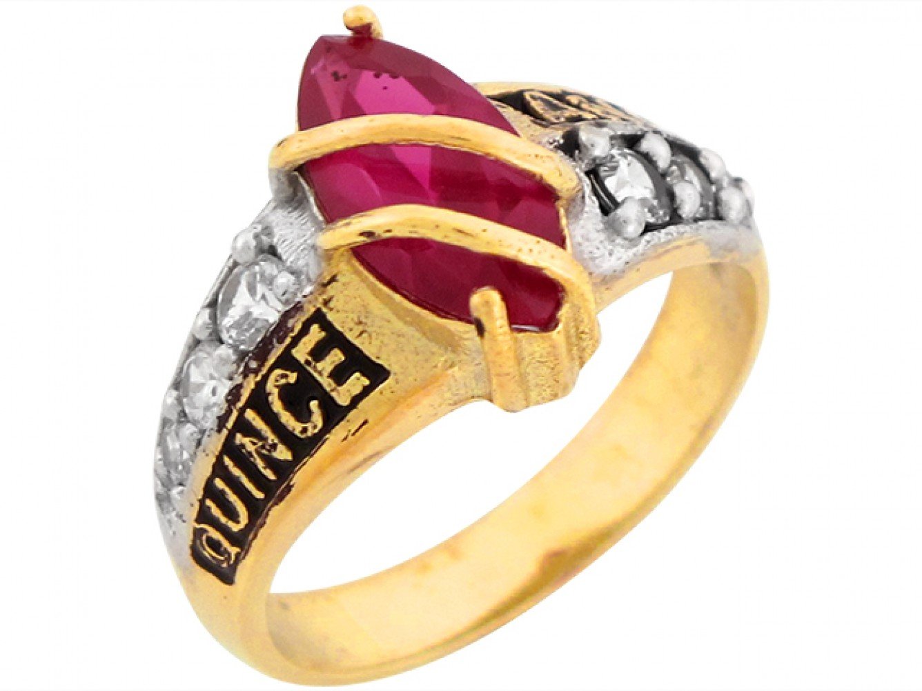 Gold 15 Anos Quiceanera Birthstone Ring (JL# R6353)